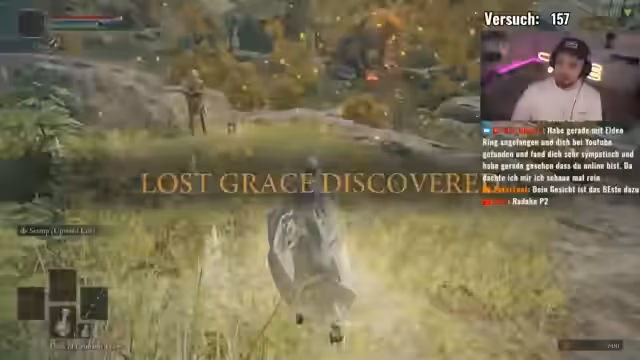 03:12:17Der Streamer findet die Waffe mit Flaming Strike überraschend gut und das Moveset schnell. Er startet heute zum vierten Mal einen neuen Run und ist jedes Mal rausgekommen, aber dreimal dumm gestorben. Er findet ein Scavenger Curved Sword, bekannt als eine der besseren Waffen im Spiel, besonders in Kombination mit einer anderen Curved-Waffe. Er findet Leders Armor, die er als eine der besten im Spiel bezeichnet, mit guter Verteidigung für das Gewicht, aber noch zu schwer. Der Streamer stellt fest, dass der Run wieder gut läuft und der Schaden, den er macht, verrückt ist. Er hat Schlafprobleme und wird von jemandem mit Hallo begrüßt. Der Streamer hat kein Lichtshirt und stellt fest, dass er ein Heavyload ist. Er lässt ein Item liegen, weil er Angst vor dem Gegner hat. Die Main-Waffe ist gerade das hier. Der Schaden, den die Gegner machen, ist relativ gering und der Schaden, den er macht, sehr gut. Gegen NPCs ist das hier crazy gut, wie ihr seht. Man muss nur das Timing erwischen. Der Schaden ist gerade noch frech, aber das ist wegen des Ortes, auf dem sie kämpfen, Limgrave, wo die Gegner sehr schwach sind.