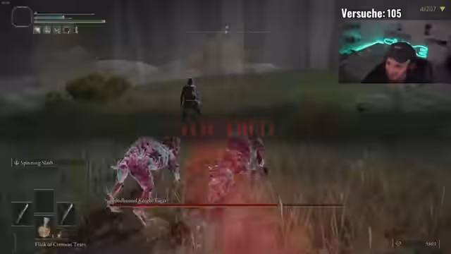 05:31:09Die Session beginnt mit dem Besiegen von Mesma, wobei die Geschwindigkeit des Ablebens des Gegners überrascht. Es folgt die Konfrontation mit den Valiant Gargoyles, die als früh im Spiel gut zu besiegen eingeschätzt werden. Die Lorettas stellen eine Herausforderung dar, da sie statische Effekte ignorieren und der aktuelle Build wenig Schaden verursacht. Es wird der Bedarf an einer Waffe mit mehr Schaden, wie Flaming Strike, betont. Das Finden und Nutzen von Items wird durch die hohe Anzahl an Gegnern erschwert, was dazu führt, dass einige Items ignoriert werden, insbesondere kleinere. Der Fokus liegt auf dem Finden einer Waffe, die adäquaten Schaden verursacht, da die aktuelle Stärke C Waffe unzureichend ist. Die Black-White-Blade wird in Betracht gezogen, um Giftschaden zu verursachen, was durch vorherige Level-Investitionen unterstützt wird. Es wird über die Notwendigkeit gesprochen, Damage zu erhöhen, da selbst in Leonia die Grenzen des aktuellen Builds erreicht werden. Lightning Slash wird als wünschenswerte Ash of War identifiziert, um Damage zu erhöhen und in der Arena effektiver zu sein. Der Streamer äußert den Wunsch nach dem Drachenziel, um die Drachenangriffe zu verbessern und betont, dass er fast gestorben wäre und viel Glück gehabt habe.