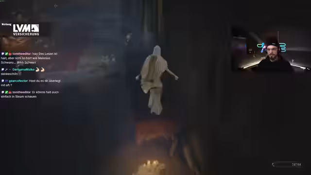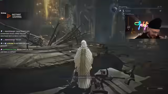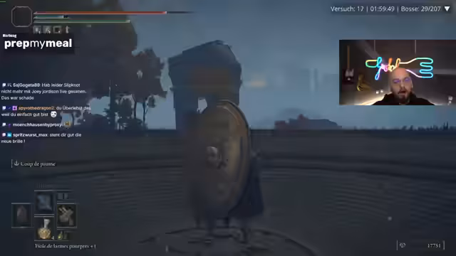 05:03:12Der Streamer diskutiert über die Vorteile von „Preparmine“ als Alternative zu teuren Essenslieferungen. Er spekuliert über mögliche Jobverluste durch KI, die nicht unbedingt die erwarteten Branchen betreffen könnten, wie zum Beispiel Broker. Er wünscht einem Zuschauer, der sich die Hand gebrochen hat, gute Besserung und überlegt, welche Speisen sich am besten einhändig essen lassen, wobei Pizza als logischste Option erscheint. Er ist frustriert, dass er immer noch nicht das benötigte Achter-Upgrade für seine Waffe hat, ist aber überzeugt von der Stärke seiner aktuellen Ausrüstung. Er erhält eine neue Waffe, die „Epi della nuée ardente“, und spricht über seine wechselnden Lieblingsmusiker, die von Linkin Park über Disturbed und Five Finger Death Punch bis zu Vorakels reichen. Er stellt fest, dass Linkin Park am längsten seine Nummer eins war. Er macht eine kurze Trinkpause und bemerkt, dass seine aktuelle Waffe etwas kurz ist, was im Kampf verwirrend sein kann. Er ist enttäuscht von einer anderen Waffe, die er als „Parfumflasche“ bezeichnet, da sie als Waffe ungeeignet ist. Er findet einen schweren Helm und ungewöhnliche Items, die er als unnötig, aber interessant empfindet. Er wertet seine Ausrüstung auf und diskutiert über die Beliebtheit von Brokkoli. Er erinnert sich an alte TAN-Generatoren und lobt die moderne S-Push-TAN-App der Sparkasse. Er ist frustriert über technische Probleme mit der App eines Zuschauers und erinnert sich an alte Internet-Memes. Er entdeckt ein „Crucible Duo“ in einem ungünstigen Bereich und hofft auf eine gute Waffe. Er sucht dringend nach einem Upgrade für seine Flasche und navigiert vorsichtig durch gefährliche Gegner, um Items zu sammeln. Er ist beeindruckt vom Schaden eines Gegners und frustriert über die mangelnden Möglichkeiten zur Verteidigung auf dem Pferd. Er überlebt knapp einen Kampf und ist erleichtert, dass er nicht gescammt wurde, abgesehen von Fahrtkosten und Zeit. Er kämpft mit einem „Schwergewicht“-Status, der seine Beweglichkeit einschränkt, und plant, in ein anderes Gebiet weiterzuziehen, um Gegner zu finden, die er trotz dieser Einschränkung besiegen kann. Er reflektiert über die bisherigen schweren Bosse und ist zu faul, diesmal auszuweichen.