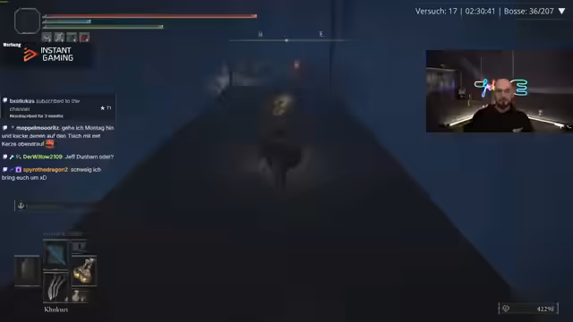 02:35:12Der Spieler äußert den Wunsch, die störenden Fackeln loszuwerden und findet schließlich leichtere Kleidung, was das Problem des Übergewichts löst. Ein wichtiger Rune wird gefunden und direkt eingesetzt, um die Fähigkeiten zu verbessern. Es wird erwähnt, dass der Mitspieler bereits Runenbögen besitzt, der Spieler selbst jedoch nicht. Nach dem Verkauf einiger Gegenstände kann der Spieler seine Ausrüstung weiter verbessern. Der Spieler tötet den Boss "Binar" und findet dabei eine neue, effektive Waffe, die den Bosskampf erheblich erleichtert. Die Waffe wird als „geil“ beschrieben und ermöglicht es, den Boss sofort zu besiegen. Die Diskussion über das Moveset des Bosses und die Unterschiede zu anderen Gegnern zeigt die detaillierte Auseinandersetzung mit den Spielmechaniken. Trotz der Erfolge bleibt die Herausforderung bestehen, die optimale Ausrüstung zu finden und die Bosskämpfe effizient zu gestalten.