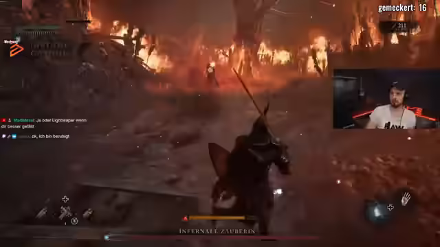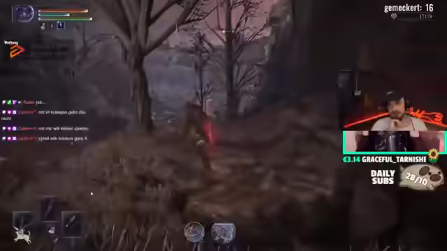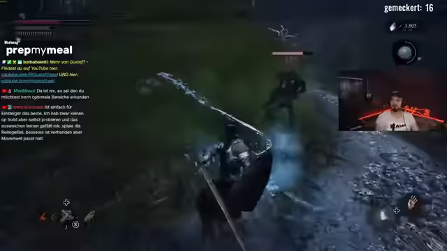 02:56:16Der Streamer betritt die Umbral-Welt und kämpft gegen neue Gegner. Er diskutiert mit dem Chat über Boss-Ausrüstung und ob es sich lohnt, dafür extra zu sterben. Er findet einen Ring, der seine Ausdauerregeneration erhöht, und behält ihn. Er interessiert sich nicht für Trophäen und will das Spiel ohne Komplettlösung spielen. Er versucht, ein Item von sich zu entfernen, das er in einer Kette gefunden hat. Er betritt die Umbral-Welt, um einen Gegner zu besiegen, der in der normalen Welt zu stark ist. Er erkundet ein neues Gebiet und versucht, sich zu orientieren. Er findet heraus, dass er bestimmte Gegenstände benutzen muss, um weiterzukommen. Er testet seine neue Waffe und stellt fest, dass sie gut ist, aber eine geringere Reichweite hat als er dachte.