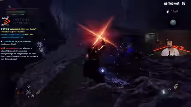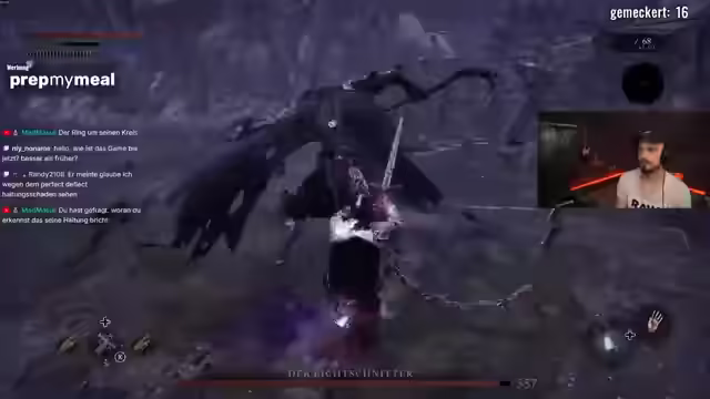 01:53:15Der Streamer diskutiert mit dem Chat über die Sinnhaftigkeit von 1440p-Auflösung im Stream und erklärt, warum er bei 1080p bleibt. Er besiegt einen Boss und probiert verschiedene Taktiken aus. Er erinnert sich an frühere, negative Erfahrungen mit einem bestimmten Gebiet im Spiel. Er findet einen Schlüssel und überlegt, ob er zurückgehen soll, um ihn zu verwenden. Er besucht den Himmelsrast und sucht nach einer Möglichkeit, seine Waffe aufzuwerten. Er stellt fest, dass er seine Heilungen verbessert hat und bei einem Händler Gegenstände kaufen kann. Er probiert eine neue Waffe aus, die ihm aber nicht so gut gefällt wie sein aktuelles Schwert. Er sucht weiterhin nach einem Ort zum Aufwerten seiner Waffen und spricht mit NPCs, findet aber keine Lösung.