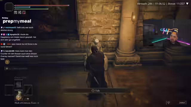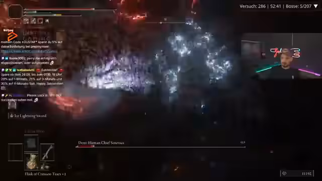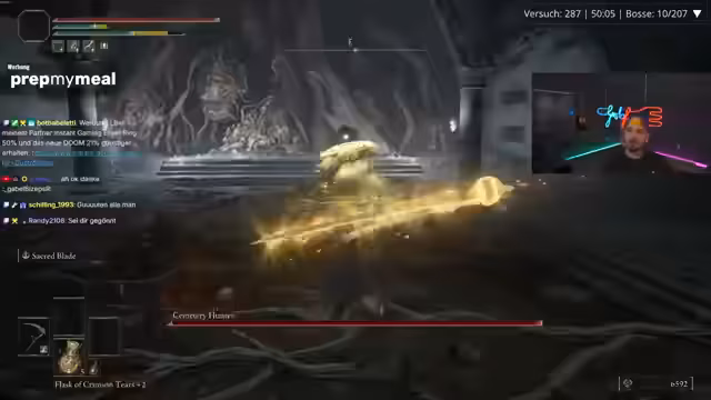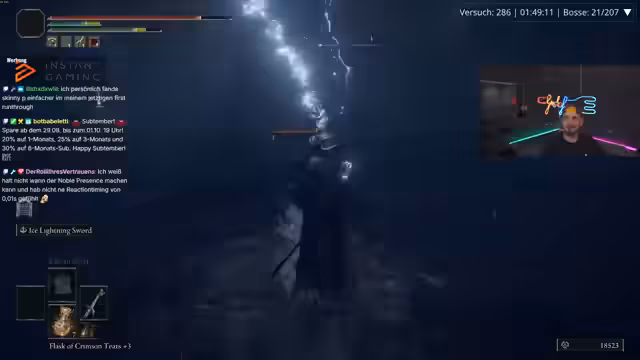 01:08:21Im letzten Stream am Donnerstag wurde eine Stunde lang Maliketh geübt, was als spaßiger Parry Run empfunden wurde. Es gab Tipps für Interessierte, sich den Stream anzusehen. Der Kampf gegen Gideon wurde als wenig erfreulich in Erinnerung behalten, während Maliketh als Genuss empfunden wurde, was zu einem besseren Verständnis des Kampfes führte. Es wurde festgestellt, dass der Parry Run überhaupt nicht frustrierend war. Der Streamer vergaß zwischenzeitlich den Kampf gegen Gideon, Maliketh hingegen war ein Genuss und half dabei, den Kampf besser zu verstehen. Es wurde überlegt, ob das Bellburn bei Maliketh nicht mitgenommen wurde. Der Tree Sentinel wurde als normaler Gegner identifiziert, und es wurde festgestellt, dass Lightning Shroudin stark ist. Der Arcane Run erfreut sich weiterhin großer Beliebtheit und ist möglicherweise das meistgesehene Video auf dem Kanal.