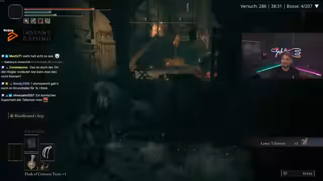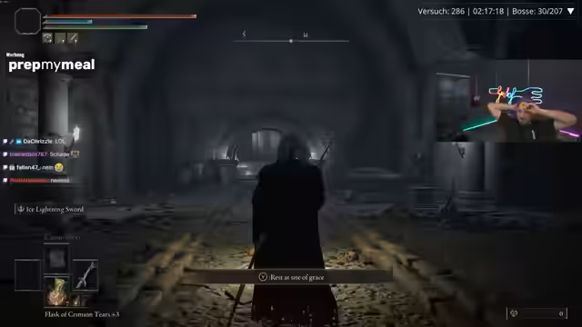 02:42:47Die Überlegungen zur Charakterwahl und Waffenpräferenzen im Spiel werden erörtert, wobei der Fokus auf Waffen mit Statuseffekten und der Fähigkeit zum Micro-Staggern liegt. Die Frustration über dumme Tode und das wiederholte Scheitern in Runs wird thematisiert. Der Streamer äußert seine Vorliebe für eine bestimmte Waffe und reflektiert über die Gründe für seinen Tod. Es wird über die Schwierigkeit gesprochen, immer wieder von vorne anfangen zu müssen, insbesondere aufgrund unnötiger Fehler. Die Diskussion geht über zu den Details der aktuellen Challenge, bei der es darum geht, das Spiel mit bestimmten Einschränkungen zu spielen. Die Wahl der Waffen und die Anwendung von Asche werden erklärt, wobei der Streamer seine Strategie erläutert. Es wird auch auf die Bedeutung des Chats und die Interaktion mit den Zuschauern eingegangen, indem Fragen beantwortet und auf Kommentare reagiert wird.