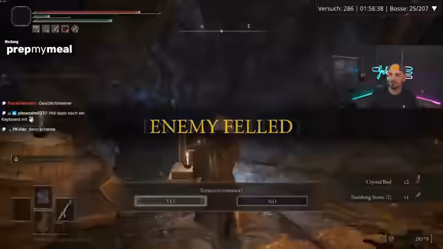 01:54:18Ein bestimmter Gegner bereitet im Stream Schwierigkeiten, da keine effektiven Mittel vorhanden sind, um ihn zu besiegen. Es wird betont, dass es keine Option ist, einfach an ihm vorbeizurennen, da dies zu riskant ist. Stattdessen wird beschlossen, den Kampf auf später zu verschieben. Der inseparable Sword wird als nützlich erachtet, aber die geringe Faith des Charakters stellt ein Problem dar. Es wird diskutiert, wie man den Gegner mit Feuerbomben besiegen könnte, aber diese Idee wird als zu riskant verworfen. Es wird festgestellt, dass der aktuelle Setup des Charakters nicht ideal für diesen Gegner ist. Durch den Erhalt von Sub-Geschenken wird der Streamer unterstützt und motiviert, die Herausforderungen anzunehmen. Der Fokus liegt darauf, keine unnötigen Risiken einzugehen und stattdessen eine sichere Strategie zu verfolgen.
