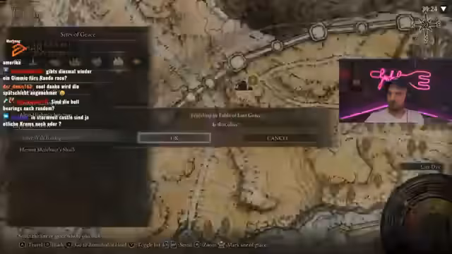00:19:31Nachdem die Erkundung der ersten Area fortgesetzt wird, stößt der Streamer auf einen besonders starken Gegner, der ihm mehrmals das Leben kostet. Er ist frustriert von den hohen Schadenswerten und den unklaren Angriffsmustern. Der Streamer bemerkt, dass er auf eine andere Kampfweise umstellen muss, da seine bisherige Taktik nicht mehr funktioniert. Es handelt sich um einen Bosskampf, der als 'Certified Dark Souls Moment' beschrieben wird, bei dem der Spieler präzise Ausweichen muss, was ihm jedoch nur schwer gelingt.