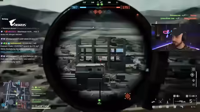 01:33:21Nachdem der Streamer eine neue, leistungsstarke Fernkampf-Waffe freigeschaltet hat, macht er sich deren Vorteile zunutze. Er erzielt mehrere Long-Range-Kills und bricht sogar seinen eigenen Rekord mit einem Shot aus 291 Metern. Die Waffe, insbesondere mit einem speziellen Visier, fühlt sich extrem stark und spaßig an, was seine Motivation steigert. Trotz der Erfolge ist er frustriert, da er oft von Gegnern eliminiert wird, die er nicht sehen kann, oder durch unfaire Tode wie den Beschuss durch Anti-Luftabwehr-Geschütze, die den Kampf gegen Helikopter zur Herausforderung machen.