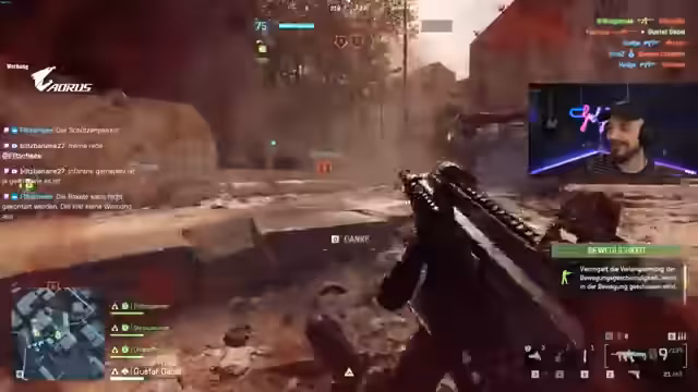 00:37:45Der Streamer hat eine neue Waffe freigespielt, die KV9, die ihm aufgrund ihrer hohen Schadenswerte und Feuerkraft besser gefällt als bisherige Modelle. Er diskutiert im Chat über das Time to Kill (TTK) und den Spielstil, bei dem er sich eher aggressiv bewegen möchte. Die Session endet mit der Verteidigung eines Punktes, wobei die Kontrolle über das Spawnen des Teams und die gegnerische Übermacht einen entscheidenden Faktor darstellen.