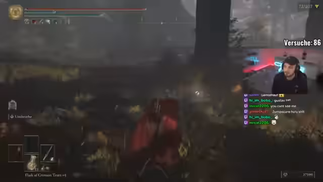 01:26:39Der Streamer beginnt mit einer Erklärung der grundlegenden Mechaniken des Spiels. Er betont, dass Waffen im Inventar passive Perks-Buffs aktivieren, auch wenn sie nicht benutzt werden. Der Stufenaufstieg wird als simpel beschrieben, da man nur Erfahrung sammeln muss, was relativ schnell vonstatten geht. Ein bemerkenswertes Feature ist die Abschaffung des Fallschadens, was das movement des Spielers signifikantly verändert und ihm mehr Möglichkeiten für Bewegung gibt. Das Spiel wird als deutlich hektischer und actionreicher als das normale Elden Ring beschrieben, was den Druck erhöht.