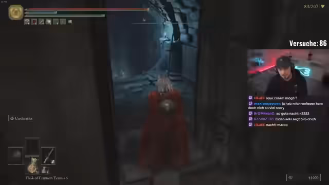 04:27:53Der Stream setzt seinen Elden Ring Randomizer Run fort und sucht dringend nach einer Rot-Waffe, die als besonders wichtiger Statuseffekt identifiziert wurde. Der aktuelle Build basiert auf Gift, und das Ziel ist, eine Waffe zu finden, die sowohl Rot als auch Gift kombinieren kann, um den Schaden zu maximieren. Der Streamer kämpft gegen einen starken Boss namens Sandfüster, den er nach einem sehr langen und anstrengenden Kampf besiegt, aber ohne die erhoffte Belohnung.