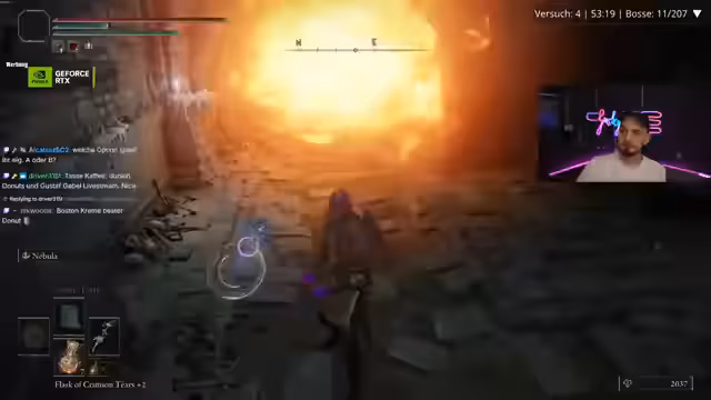 06:55:37Der Run in Elden Ring fand mit einem Sieg gegen einen weiteren Boss sein Ende, wobei die verwendete 'Flameskewer' erneut entscheidend war. Der Streamer zeigte sich mit dem Spielverlauf zufrieden und gab an, dass er für heute genug habe. Als Nächstes wurde ein Kampf gegen 'Gostock' angekündigt. Der Stream endete mit der Ankündigung, dass der Streamer am nächsten Tag gegen 14 Uhr wieder online gehen werde.