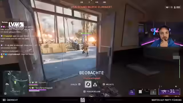 02:28:09Das Spiel beginnt mit einem hitzigen Gefecht, in dem der Spieler von Gegnern verfolgt wird und in einem kurzen Duell eliminiert wird. Nach dem Respawn versucht er, sich neu zu orientieren, wird aber schnell wieder ins Kampfgeschehen hineingezogen. Die Hitboxen und der Aufbau der Map führen zu verwirrenden Situationen, und der Spieler fühlt sich überfordert von der Menge an Loot und den taktischen Möglichkeiten. Teamkollegen werden gerufen, doch ihre Anwesenheit ist unklar.