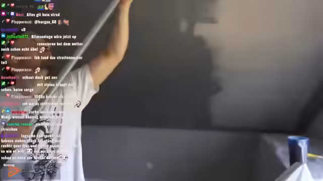 00:10:33Dieses Mal wird die Arbeit gezielter und schneller erledigt. Anstatt alle Wände auf einmal zu beginnen, konzentriert er sich auf einzelne Wände, um einen besseren Arbeitsfluss zu gewährleisten. Er lässt das Klimagerät aus, um ein zu schnelles Trocknen der Farbe zu verhindern, und nutzt bessere Arbeitsbedingungen. Trotz der neuen Ausrüstung ist die Aufgabe anspruchsvoll und anstrengend, er lässt den Chat aber weniger teilhaben, um zügig voranzukommen und noch am Abend Zeit für Gaming zu haben.