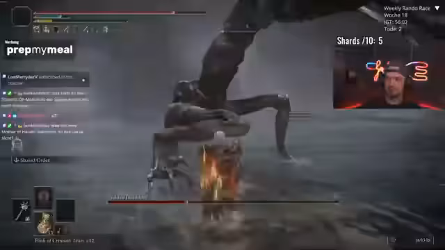 04:46:56Der Streamer trifft die strategische Entscheidung, nicht gegen einen starken Boss zu kämpfen, sondern sich töten zu lassen, um direkt bei einem 'Grace'-Punkt zu respawnen und so Zeit zu sparen. Diese Taktik wird als notwendig angesehen, um im Rennen konkurrenzfähig zu bleiben. Trotzdem stirbt der Streamer mehrfach, was zu Frustration führt, da er es auf sich bezieht, dass Konkurrenten wie Alex anscheinend fehlerfreier spielen und dadurch einen Vorteil erlangen.