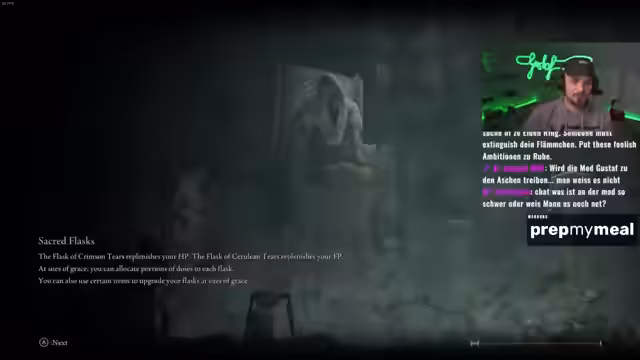 04:30:08Nach dem mühsamen Sieg erkundet der Streamer die neuen Mechaniken, die die Mod mit sich bringt. Er stößt auf das Runen-Forging-System bei Fingerreader Enia, das durch eingesammelte Rune Fragmente aktiviert wird. Er kauft und verwendet erste Runen wie den 'Grafted Rune', der passiv seine Vigor (Lebenspunkte) erhöht. Dies stellt eine neue Form des Character-Progressings dar, das er nach den harten Kämpfe dringend benötigt, ist sich aber unsicher über die Wirksamkeit.