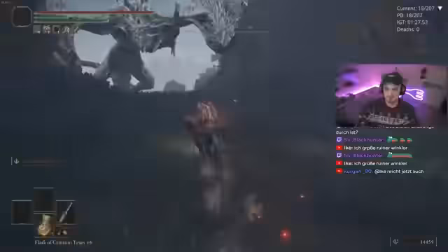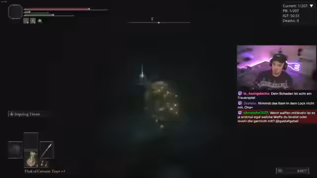 04:12:21Der Streamer nimmt den aktuellen Wettbewerb ernster und möchte gewinnen, obwohl bei Matze mehr Geld im Spiel ist. Er müsste schneller als Sirius die 207 Gegner töten. Kaiju gibt an, dass er 14 Stunden gebraucht hat. Der Streamer erklärt, dass er für jeden Boss keine neue Waffe nimmt, sondern das seine eigene Challenge ist. Bei Boss 140 wurde er unfair erwischt. Goddix große Rune lohnt sich sehr, weil man plus 5 auf alle Werte bekommt. Er muss nicht mal Faith leveln, das ist crazy und viel zu gut. Für den Starscourish Radar sollte die Waffe plus 12 bis 15 sein, die Dunkelspielstein Waffe plus 5 oder 6. Er konzentriert sich, da man hier leicht sterben kann, egal wie stark man ist. Er freut sich über die gefundene Waffe und dass diese Spaß macht.