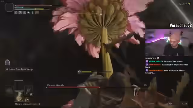 01:31:13Der Streamer spricht über die Herausforderungen des aktuellen Runs, bei dem er Bosse ohne zu sterben und ohne Waffen-Leveling besiegt. Er erwähnt seine 'Secret Ability Präventivschrank' und betont die Wichtigkeit von Konzentration, da man leicht sterben kann. Er äußert seine Freude darüber, privat 'Kingdom Come' weiterzuspielen und geht auf die Frage nach 'Suizen' ein. Er analysiert Kampfsituationen, wie den Verlust von Stamina und die Notwendigkeit, Angriffe zu timen. Des Weiteren wird die Kombination von Frost und Bleed auf einer Waffe diskutiert. Er lobt die Inszenierung von Mesmer als Boss, findet den Kampf aber weniger gut. Er schätzt Placidus Sex wegen seiner Teleportationsfähigkeit, die cool umgesetzt sei, und bezeichnet Marlenia als seinen Lieblingsboss. Es wird die Freude über den bevorstehenden Charakter und die bereits besiegten Bosse ausgedrückt, darunter Soldier of Godric und Romina. Abschließend wird kurz geprüft, ob Romina vergiftet werden kann, und die Möglichkeit, Frost auf die andere Waffe zu machen, in Betracht gezogen.