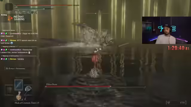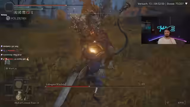 04:23:59Der Streamer bewertet verschiedene Bosse. Morgott wird als nicht allzu schlimm empfunden, wenn man viel Schaden hat oder MicroStaggers nutzen kann. Er äußert Bedenken bezüglich Renna, da dieser einen Angriff hat, der sechsmal trifft und oft zum sofortigen Tod führt. Bei Maliketh und Gurranq wird die Schwierigkeit der Bosse diskutiert, wobei der Streamer sie als nicht schwer empfindet, wenn man sie beherrscht, aber ein falscher Anfang schnell zu Problemen führen kann. Er erwähnt, dass er Gurranq getötet und gleichzeitig gestaggert hat, was als bitter empfunden wird. Gideon Ofnir wird als brutal beschrieben und der Streamer hat Schwierigkeiten, ihn zu besiegen, da Gideon ihn kaum angreifen lässt. Die Strategie, Gideon in einen Loop zu bringen, wird als effektiv, aber schwer umsetzbar beschrieben. Der Streamer hat Probleme mit Radagon, insbesondere mit dessen Übergängen und dem hohen Schaden, den er erleidet. Er stellt fest, dass seine Waffe im Kampf gegen Elden Beast nicht optimal ist, da der physische Schaden zu gering ist und viele Gegner immun gegen Holy Damage sind.