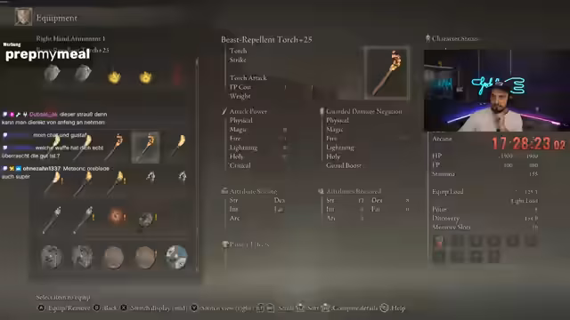 04:14:36Der Streamer diskutiert seinen Schaden im Spiel, insbesondere im Vergleich zu anderen Spielern. Er stellt fest, dass 40 Stärke und 40 Intelligenz einen erheblichen Unterschied machen könnten. Die Effektivität seiner Angriffe wird hinterfragt, da er dachte, sein Schaden sei gut, während ein anderer Spieler ihn als unzureichend empfand. Er erwähnt, dass fünf Punkte in beiden Stats bei niedrigem Level viel ausmachen und fünf Prozent mehr Schaden dazu führen können, dass man mit einem Schlag besiegt wird. Die Diskussion dreht sich auch um die Wahl der Waffen und die Skalierung von Stärke und Geschicklichkeit, wobei er feststellt, dass sich das Leveln von Geschicklichkeit bei seiner Waffe eher lohnt und Stärke erst ab 50 oder 60 Punkten relevant wird. Er vergleicht die Effektivität von R1- und R2-Angriffen bei verschiedenen Bossen wie Fire Giant und Morgott, wobei R2-Angriffe bei Fire Giant effektiver erscheinen. Die Holy Damage von Waffen im Basisspiel wird als zu schwach kritisiert.