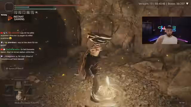 00:38:50Der Streamer kämpft gegen einen weiteren Boss, der eine unangenehme Ausstrahlung hat und viel Schaden verursacht. Es gelingt ihm, den Boss zu besiegen, und er zeigt sich zufrieden mit dem Schaden, den seine Waffe verursacht. Er erwähnt, dass SeriousChallenges gegen 15 Uhr dazukommen möchte, um über die Waffen für den gemeinsamen Stream zu sprechen. Die aktuelle Waffe wird als 'böllerig' beschrieben, was bedeutet, dass sie sehr stark ist. Er betritt eine Katakombe, die als 'unangenehm' beschrieben wird, da die Gegner strategisch platziert sind, um den Weg zu versperren. Er muss eine Leiter hinaufsteigen, was die Situation zusätzlich erschwert. Er entdeckt eine neue Waffe, die 'Starfists', die er aber nicht spielen möchte, da er lieber ungewöhnliche Waffen bevorzugt.