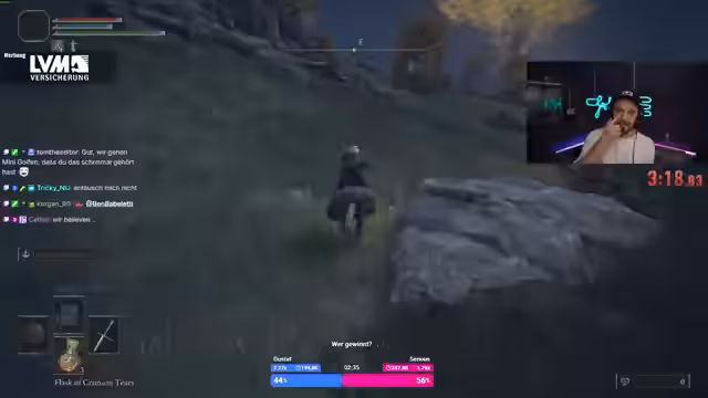 01:31:37Es wird diskutiert, ob ein Steinschlüssel mitgenommen werden soll, was theoretisch möglich wäre, aber der Streamer entscheidet sich dagegen. Kurz darauf stirbt er durch eine Fledermaus, was zu einem Zeitverlust von etwa 30 Sekunden führt. Er reflektiert über den langsamen Tod im Spiel und die Notwendigkeit, daraus zu lernen, um beim nächsten Mal schneller zu reagieren. Die Zuschauer werden als voreingenommen empfunden, da sie gegen ihn wetten, was ihn dazu bringt, über die Möglichkeit nachzudenken, gegen sich selbst zu wetten, um 'fettes Geld' zu verdienen. Er entscheidet sich, einen bestimmten Gegenstand mitzunehmen, da er zusätzliche Leben und einen goldenen Runenwert bietet, was für die ersten Kämpfe vorteilhaft sein könnte.