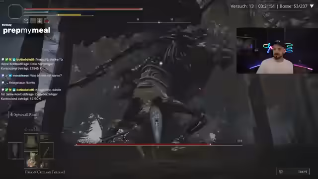 05:01:19Der Streamer nimmt das Nicht-Einsammeln von Items an gefährlichen Positionen sehr ernst, was zu vielen Toden führt, da er oft die Gefahr unterschätzt. Er findet eine schwere Rüstung, die ihn in den Heavy-Load-Zustand versetzt, was das Ausweichen erschwert, aber durch hohen Schaden kompensiert wird. Die Diskussion über Talismane und deren Auswirkungen auf den Run ist zentral, da er hofft, gute Talismane zu finden, um seine Build zu verbessern. Er erwähnt, dass er einen GDN-Stab als Waffe hat und überlegt, wie er seine Great Runes am besten aktiviert. Der Streamer äußert sich frustriert über bestimmte Gegner und Bosse, die ihn nicht angreifen lassen oder unfaire Angriffe haben. Er findet einen 'Two-Headed-Talisman', der als nicht schlecht bewertet wird, und freut sich über den Fund von 'Glendikasmo', der das Gefühl für den Run verbessert. Er muss sich von seinem Stream-Partner verabschieden, da er zu einer Hochzeit fahren muss, was eine längere Pause vom Streamen bedeutet.