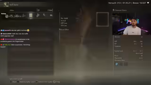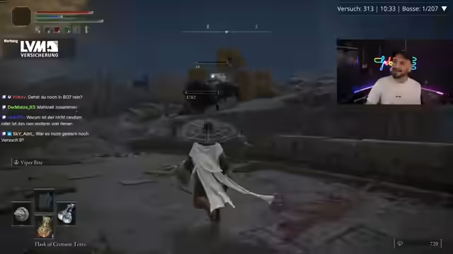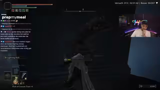 00:32:04Die Suche nach einer effektiven Waffe oder 'Ash of War' mit hohem Schaden steht im Vordergrund, da der aktuelle Run ohne diese Gegenstände sehr anstrengend ist. Der Streamer darf nicht vergessen, nicht aufzuleveln, da dies die Challenge beenden würde. Es wird über die Unterschiede zu früheren 'Albino-D'-Runs gesprochen, insbesondere dass der Tutorial-Boss nicht getötet werden musste, was die Anzahl der Tode erheblich reduziert. Die Diskussion über 'Shooter Games' als 'overrated' wird als falsche Aussage abgetan, da sie vielen Menschen Spaß machen und ein großes Genre darstellen. Ein 'Leiter-Bug' wird erwähnt, der einen 'No-Hit'-Run verhindert hat. Die Waffe 'Mikkel and Night Sword' wird als eine der besten für die Challenge identifiziert, jedoch fehlt es an 'Faith', um sie effektiv zu nutzen. Das Sammeln von Items ist entscheidend, um gute Waffen und 'Ash of Wars' zu finden, auch wenn nicht jedes Item mitgenommen werden muss.