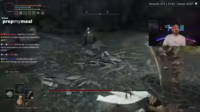 04:09:30Der Streamer hadert mit der Wahl seiner Waffe in Elden Ring und überlegt, ob das Uchigatana eine bessere Option wäre als seine aktuelle Ausrüstung. Er betont die Wichtigkeit, den Schlüssel für Raya Lucaria zu finden, um Fortschritte zu erzielen und seine Charakterwerte neu zu skalieren. Währenddessen läuft Werbung im Chat, was er entschuldigend erwähnt. Es folgen Kämpfe gegen Gegner, die er als herausfordernd empfindet, und er kommentiert die Schwierigkeit, bestimmte Attacken zu landen oder Effekte wie 'Poison' anzuwenden. Die Kämpfe sind frustrierend, und er stellt fest, dass ihm dringend mehr Effekte wie 'Rod' oder 'Frost' fehlen, um effektiv zu sein. Er überlegt, das Uchigatana auf 'Frost' umzustellen, da ihm offensichtlich Schaden fehlt, um die Gegner effizient zu besiegen.
