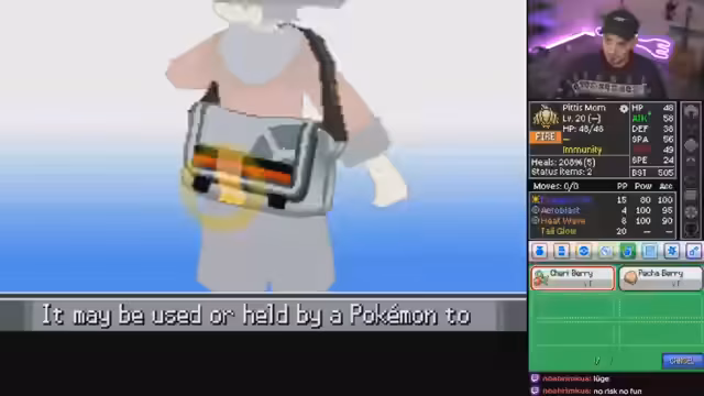 00:36:09Ein neues Pokémon wird gefangen und seine Fähigkeiten werden diskutiert. Aeroblast und Heatwave werden als sehr nützlich eingeschätzt, während Dragon Claw ebenfalls als gut befunden wird. Tail Glow, das den Spezialangriff um 100% erhöht, wird als eine der besten Attacken für diese Challenge angesehen. Insgesamt wird das Pokémon als ziemlich gut bewertet, besonders wenn es noch Moves lernen würde. Der Streamer zeigt sich begeistert und verliebt in das Pokémon. Es wird erklärt, wie Zuschauer mit Ausrufezeichen-Befehlen im Chat Informationen über Fähigkeiten erhalten können. Der Streamer zieht in Erwägung, das Pokémon dauerhaft ins Team aufzunehmen. Ein Gengar taucht auf, was zu Überlegungen führt, ob man das Team ändern sollte. Der Streamer entscheidet sich jedoch, bei Pity's Mom zu bleiben, obwohl Gengar eine verlockende Option wäre. Es wird festgestellt, dass das Pokémon keine Moves mehr lernen wird, was ein Nachteil ist. Die Stats des Pokémon werden weiterhin als gut bewertet, obwohl der Speed-Wert problematisch ist.