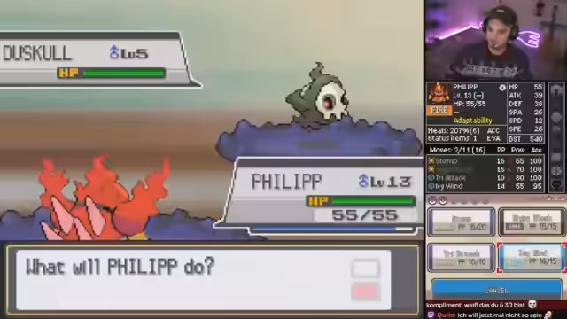 02:29:52Es wird über die Sinnhaftigkeit von Philipp im Team diskutiert und festgestellt, dass er überraschend sinnvoll ist. Ein 600 BST Pokémon bringt nur 48 XP. Blastburn macht keinen Schaden auf Cherox, was auf hohe Specialty hindeutet. Der nächste Attack kommt erst auf Level 16. Es wird die Frage aufgeworfen, warum Leute ihre Pokémon wegpacken, was mit den Attacken in der aktuellen Gen zusammenhängen könnte. Es wird festgestellt, dass alle Heals aufgebraucht sind und ein Pokémon sich selbst gekillt hat. Der Streamer kritisiert, dass man im Spiel die Attacken im Kampf nicht umstellen kann, was besonders in Gen 3 stört. Ein Shaman bringt keine XP, was als ärgerlich empfunden wird. Bisher werden alle Gegner one-shotted, was an den wenigen anständigen Gegner-Pokémon liegt. Im Rivalenkampf sind alle Heilungen erlaubt, was aber nichts nützt, da Panfi stirbt. Es wird diskutiert, ob man das Gegner-Pokémon einblenden soll und wie das in Feuerrot gehandhabt wurde. Hydro-Pumpe wird als Problem für das aktuelle Pokémon angesehen, das wenig Special Defense hat.