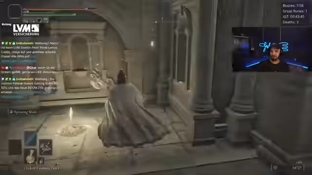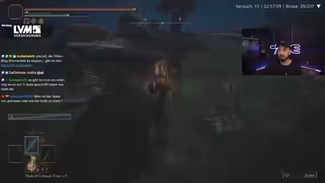 05:40:19Die Suche nach Golden Seeds und einem sechsten Stein, um eine Waffe auf Plus neun zu bringen, geht weiter. Es wird der Boss Borealis in Angriff genommen, in der Hoffnung, dass einer der Drachen die benötigten Gegenstände fallen lässt. Die bisherige Reise wird als erfolgreich bewertet, trotz eines holprigen Starts. Es wird ein DLC-Bär-Boss entdeckt, der als willkommene Abwechslung zu den Standardbossen empfunden wird, da seine Angriffe weniger repetitiv sind. Die Waffe "Lampe" wird gefunden, was als nützlich erachtet wird. Es wird festgestellt, dass noch viele Checks offen sind, darunter Loretta und die Moose. Die Strategie konzentriert sich nun darauf, diese verbleibenden Aufgaben zu erledigen, um die notwendigen Runen zu sammeln. Ein Godskin Apostel wird bekämpft, wobei die Diskussion über die Art des Schadens (Slash oder Strike) und die Effektivität bestimmter Taktiken im Vordergrund steht.