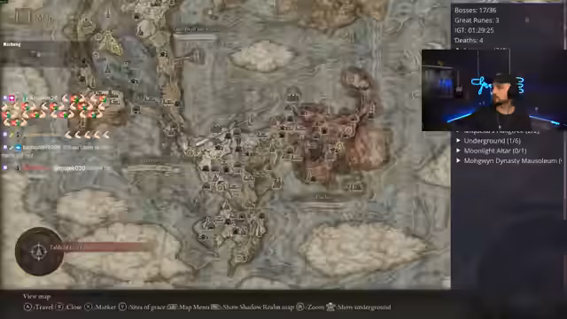 04:05:20Es wurden die generellen Regeln des Progression-Rennens erläutert. Die Graces sind von Anfang an in Leornia, Kaled, Weeping und Limgrave freigeschaltet. Sobald das Altos-Plateau über einen der drei Wege erreicht wird, schalten sich weitere Graces frei, darunter am Ende von Altos, bei Elemar, in Deepwood Death und Leg of Rod, sowie in Mount Gelmeck und Volcano Manor. Zudem gibt es zwei zusätzliche Graces: eine näher an Melania, nachdem Loretta in Hardic Tree besiegt wurde, und eine bei Fort Height nach dem Sieg über Radan, um lange Wege zu vermeiden. Ein neues Feature ist, dass nur eine der Fackeln für die Muses entzündet werden muss, um sofort am Kampf teilnehmen zu können. Dies wurde als positive Änderung hervorgehoben, da es die Frustration reduziert, wenn Teamkollegen lange Wege zurücklegen müssen.