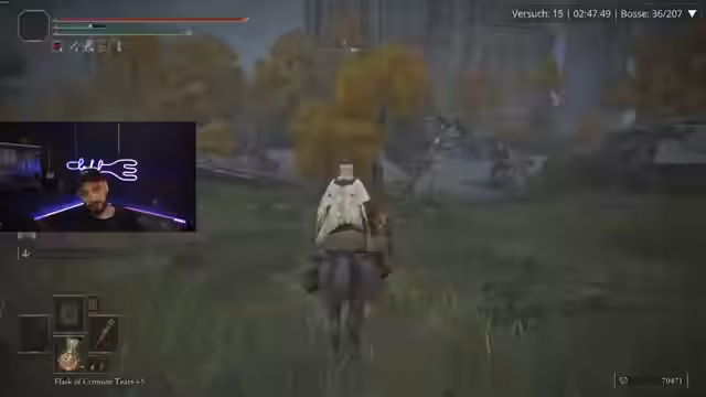 00:11:23Der Stream setzt im Spiel Elden Ring fort, indem er die klassische Route durchläuft, um den Boss Gustok zu besiegen. Ein wichtiges Thema ist das Waffen-Upgrade, bei dem Mangel an Schmiedesteinen das Fortkommen bisher behindert hat. Ein Durchbruch gelingt mit dem Fund der Ash of War 'Chilling Mist', die als sehr nützlich für die Herausforderung angesehen wird. Der Streamer sammelt verschiedene Items ein, darunter Gift, und plant weitere Waffen-Upgrades.