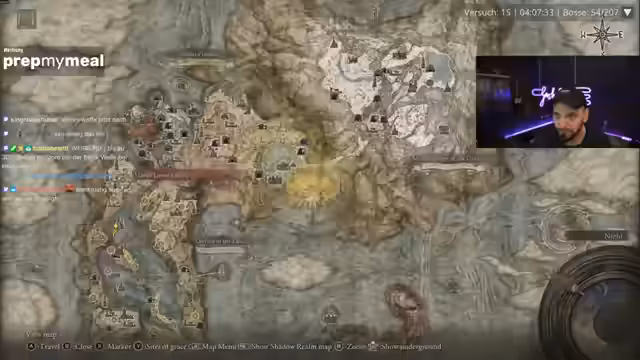 04:12:15Nach dem Start des Rennens wurden die ersten Erkundungen vorgenommen. Es wurde festgestellt, dass die Graces freigeschaltet sind, aber keine weiteren Vorteile bestehen, außer Bellbearing 1 und 2 für Somba und Smithing. Dies wurde als interessante Mechanik empfunden, die schnelle Fortschritte ermöglicht. Es wurde auch die Möglichkeit erwähnt, im Lake of Rot reiten zu können, was die Bewegung dort erleichtert. Spieler entdeckten, dass Astell und Adula schnelle Checks sind und dass Farofs zwei Golden Seas enthält, da Drachen als Checks zählen. Der Academy Key könnte sich ebenfalls bei einem Drachen befinden. Es wurde betont, wie wichtig es ist, sich an die neuen Timings und die veränderte Platzierung von Items zu gewöhnen, da viele Dinge durcheinandergewürfelt wurden. Erste Versuche, Items zu finden, waren jedoch noch nicht sehr erfolgreich, was zu Frustration führte.