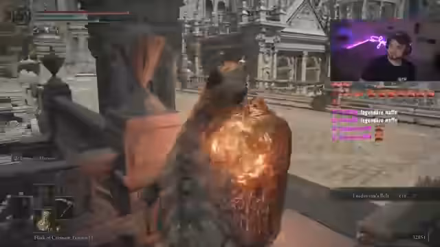 01:37:32Zu Beginn des Streams erkundet der Streamer Castle Morn in der Convergence Mod. Er ist von den Veränderungen und dem erhöhten Schwierigkeitsgrad beeindruckt, bemerkt aber auch technische Eigenheiten, wie unendlich scheinende Waffenhaltungen und Effekte. Der erste Boss, eine Mischung aus Leon, Misbegotten und Radagon, stellt eine große Herausforderung dar. Der Streamer kämpft sich durch die ersten Phasen, findet den Boss aber in der zweiten Phase aggressiv und unangenehm, da er kaum Pausen macht und eine ständige Bedrohung darstellt.