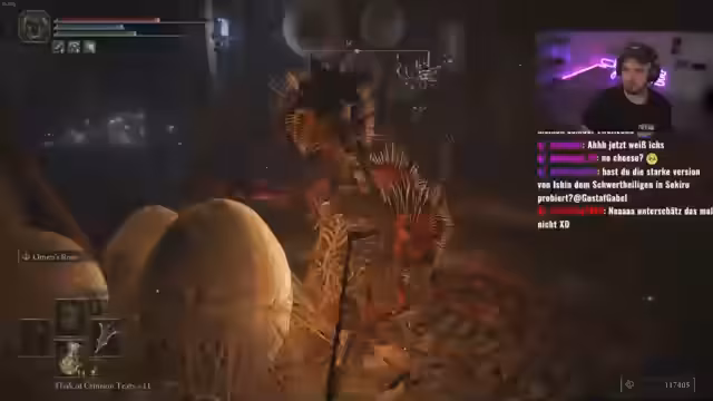 03:21:04Der Streamer besucht das Sewers of Caria, was er zum allerersten Mal seit drei Jahren spielt. Dort wird er von den 'Zehn Fingern' angefasst, was als positives Erlebnis beschrieben wird. Danach wird der 'Finger-Runen' aktiviert und eine neue Waffe namens 'Schmackhali' besessen, die mit der Fähigkeit 'Drake's Dynamism' ausgestattet ist. Nachdem versuchte Teleportation in die Hauptstadt fehlschlägt, wird nach einem alternativen Weg gesucht.