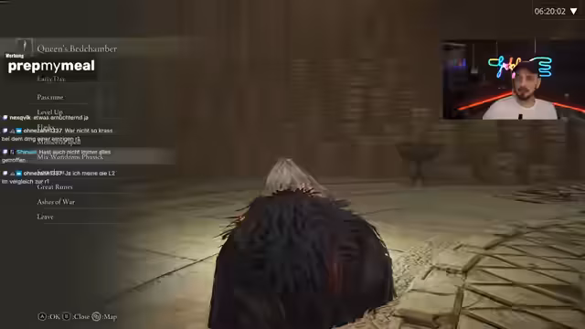 03:01:15Der Streamer nutzt den Stream, um seinen Build zu optimieren und spendiert大量 Runen, um Attribute wie Ausdauer aufzuwerten und Talismane aufzustufen. Gleichzeitig reflektiert er über seinen eigenen Perfektionismus und den Druck, Challenges ohne jegliche Abkürzungen zu meistern, was in der Vergangenheit zu Burnout geführt hat. Er beschließt, seine Denkweise zu ändern und pragmatischere Entscheidungen zu treffen, um das Spiel wieder mehr zu genießen.