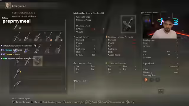 03:08:18Bei einem zweiten Versuch mit geänderten Buffs wird Malikav schnell besiegt. Der Streamer ist von der schieren Power überwältigt und lobt die enorme Schadensausgabe. Anschließend werden verschiedene andere kolossale Schwerter wie die Ruins Greatsword und die Gideon's Waffe diskutiert. Es werden deren Stärken, Schwächen und potenzielle Einsatzmöglichkeiten gegen andere Bosse wie Radagon und Elden Beast analysiert.