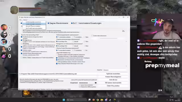 00:07:59Der Stream beginnt mit dem Streamer, der seinen Zuschauern begrüßt und auf den bevorstehenden Dark Souls 3 Randomizer ab 16 Uhr hinweist. Zunächst konzentriert er sich darauf, die technische Einrichtung vorzunehmen. Er öffnet die Mod-Engine und stellt sicher, dass der Fogate Randomizer korrekt geladen ist. Dabei tauchen jedoch Probleme auf, da der Streamer feststellt, dass der Randomizer einen identischen Seed und dieselben Startitems wie ein Mitspieler erzeugt, was er für einen technischen Fehler hält. Nach der Prüfung der Mod-Einstellungen stellt er fest, dass die Mod-Benennung möglicherweise fehlerhaft ist, was die Ursache für die fehlerhafte Generierung sein könnte. Er versucht daraufhin, die Einstellungen neu zu laden und den Seed neu zu würfeln, um das Problem zu beheben und eine zufällige Startkonfiguration für den Stream zu gewährleisten.