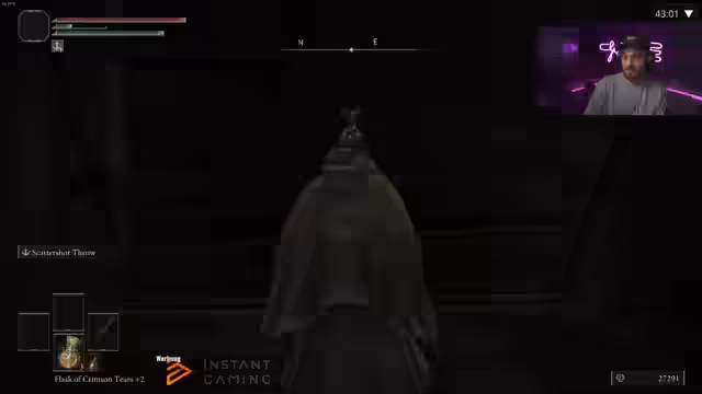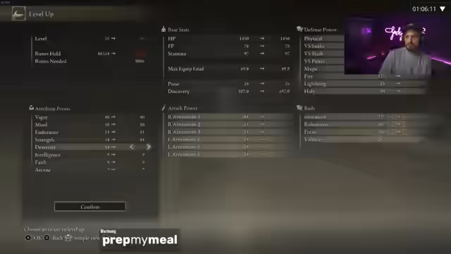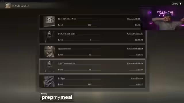 04:16:53Während des Renns findet Gustaf schnell eine Great Rune und stellt fest, dass die Rando-Race-Einstellungen wie das Entfernen aller Waffenanforderungen das Spiel viel zugänglicher machen. Er überlegt, welche Waffe er nutzen soll, da er keine Stats dafür braucht und kann, entscheidet sich jedoch vorerst für eine Waffe, die er nicht im regulären Spiel benutzt. Er sucht gezielt nach Aufwertungssteinen und Schlüsseln, um stärker zu werden.