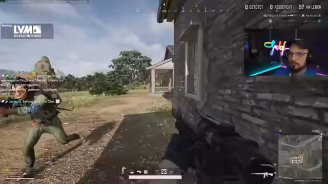 03:12:54Nach dem Öffnen einer Schatzkiste mit der Brechstange finden sie Rauchgranaten und eine Maske. Sie bemerken einen 8-fach-Scope, der als Wunschobjekt gilt, und diskutieren die Vorteile eines 6-fach-Scopes. Ein Versorgungsabwurf des Flugzeugs wird gesichtet, der Ghillie-Suits und Waffen wie die Lynx-AMR enthält. Sie planen, die AMR zu übernehmen, da sie ein besserer Sniper sein könnte, und tauschen Scopes aus. Währenddessen laufen Kampfhandlungen ab, darunter ein Schusswechsel mit einem Gegner, der einen weißen Ghillie-Suit trägt. Sie reflektieren über ihre Treffergenauigkeit und die Herausforderung, Gegner in der Endphase zu besiegen.