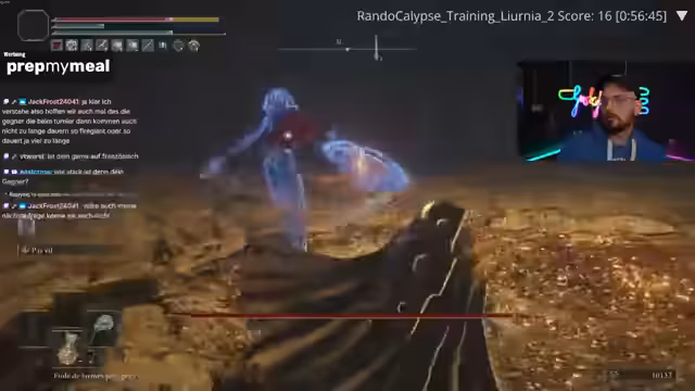 03:47:31Der Streamer startet einen Testlauf für Rando Calypse, um sich auf das Turnier vorzubereiten. Er diskutiert Waffen- und Talisman-Auswahl, darunter einen negativen Talisman, und plant die Route, um effizient Bosse zu bekämpfen. Dabei wird die Strategie besprochen, schnell zum Boss Dektus zu gelangen, um Zeit zu sparen. Der Test zeigt Herausforderungen wie lange Laufzeiten und schwierige Gegner, etwa den Bellbearing Hunter. Der Streamer optimiert den Weg, indem er Checkpoints nutzt, und analysiert, wie viel Zeit für Boss-Kämpfe benötigt wird, um Punkte im Turnier zu maximieren.