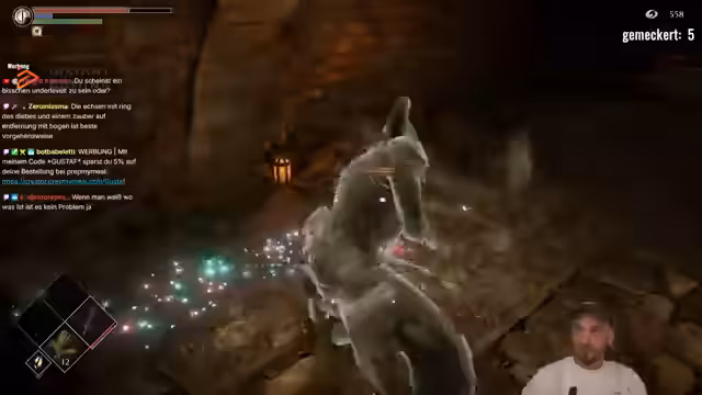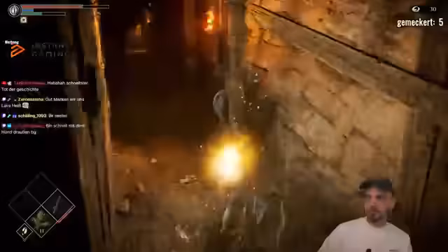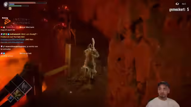 03:03:58Der Kampf gegen einen Boss erweist sich als schwierig, da die eigene Waffe wenig Schaden verursacht und die Hitboxen unpräzise sind. Es wird überlegt, die Rüstung zu wechseln, um die Feuerresistenz zu erhöhen. Der Mangel an Heilung zwingt zum Farmen von Heilgegenständen. Es wird diskutiert, ob es sich lohnt, die alten Rüstungen wiederzuholen. Der Streamer erinnert sich an negative Erfahrungen mit einem Gefängnisbereich im Spiel. Es wird der Instant Gaming Dienst erwähnt, um PC- und PS5-Spiele zu erwerben. Der Fokus liegt darauf, den Boss schneller zu besiegen, wobei die kaputte Waffe als mögliche Ursache für den geringen Schaden in Betracht gezogen wird. Verschiedene Ausrüstungsgegenstände werden ausprobiert, um die Feuerresistenz zu verbessern. Der Streamer äußert Frustration über den Kampf und die Notwendigkeit, Heilung zu farmen, um überhaupt weiterspielen zu können. Die Schwierigkeit, die Aktionen des Bosses zu erkennen und ihnen auszuweichen, wird hervorgehoben.
