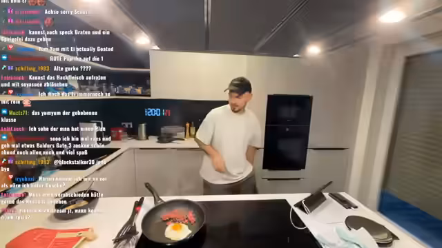 05:47:53Es gibt einen kurzen Einblick in die Küche und es wird erwähnt, dass eine Zusammenarbeit mit Prap Amil nur dann fortgesetzt wird, wenn neue Kunden generiert werden. Es wird ein Hackfleischgericht zubereitet, da keine anderen Zutaten vorhanden sind. Der Ton wird als zu leise wahrgenommen und es werden Anpassungen an den Audioeinstellungen vorgenommen, um die Verständlichkeit zu verbessern. Es wird eine improvisierte Kochshow gestartet, in der Yum Yum Nudeln zubereitet werden. Es wird kurz überlegt, ein Ei hinzuzufügen. Es wird entschieden, Hackfleisch anzubraten und hinzuzufügen. Es wird betont, dass es wichtig ist, den Arbeitsbereich sauber zu halten. Es wird überlegt, ob noch Burger gemacht werden sollen, aber das Hackfleischgericht scheint ausreichend. Es wird überlegt, ob rote Zwiebeln hinzugefügt werden sollen, um den Geruch zu verbessern.
