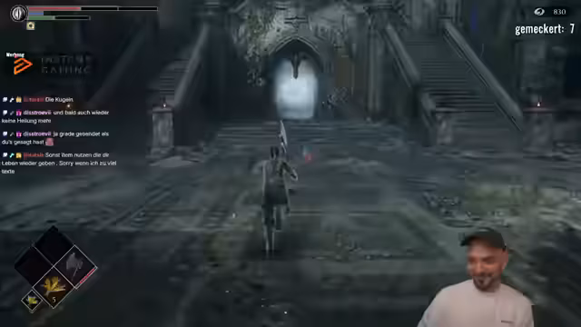 04:40:06Der Streamer stellt fest, dass er mit einem Schlag fast getötet wird und wundert sich, warum er mit einer aufgewerteten Waffe Minusschaden verursacht. Die Verwirrung über den geringen Schaden wird thematisiert. Es wird die Frage aufgeworfen, ob man mehr Leben abgezogen bekommt, wenn man mehrfach stirbt. Der Plan, den Boss zu besiegen, wird in Frage gestellt, da er als zu schwer empfunden wird. Der Streamer sucht Rat im Chat, wie man den Boss besiegen kann. Es wird festgestellt, dass der Boss wegspringt und es schwierig ist, ihn anzugreifen. Der Streamer weiß nicht, wie man zu einem bestimmten Punkt gelangt. Es wird die Empfehlung diskutiert, das ganze Spiel mit weniger Leben zu spielen, da das Spiel einen sonst bestraft. Es wird festgestellt, dass man zu wenig Leben hat und das Farmen als nervig empfunden wird. Der Streamer fragt sich, warum ein Gegner so stark war und beschließt, die Welt zu verlassen, um sie heller zu machen. Es wird diskutiert, dass Spiele, die zum Farmen zwingen, schwierig sind. Der Streamer bemerkt, dass der Boss weniger Leben haben und weniger Schaden machen soll, kann aber keinen Unterschied feststellen. Es wird festgestellt, dass die World-Tendenz anscheinend nicht so entscheidend ist wie gedacht. Der Streamer hat das Gefühl, noch am Anfang des Spiels zu sein.