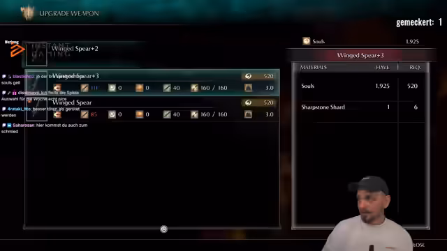 01:50:30Es wird festgestellt, dass man in Demon's Souls viel laufen muss, bevor man etwas erreicht. Der Streamer muss einen anderen Weg einschlagen, um Upgrade-Steine zu finden. Er erinnert sich daran, dass ein Boss eine Spinne ist, die er nicht mag. Ein Händler verkauft Hearthstones und der Streamer entscheidet sich gegen eine Spitzhacke. Er erinnert sich daran, dass ständig etwas auf ihn geworfen wird und überlegt, seine Werte zu verbessern. Er liest eine Nachricht, dass der nächste Gegner anfällig für Stichangriffe ist. Der Streamer erinnert sich daran, das Spiel nie zu Ende gezockt zu haben. Es wird festgestellt, dass man nur endlich viele Items mitnehmen kann. Der Streamer fragt sich, was ein bestimmtes Item macht und stellt fest, dass es gut voranläuft. Er vermutet, dass die Gegner überall hinwerfen und dass sie etwas kaputt machen müssen. Er findet Sticky White Slime, das die rechte Handwaffe mit Magie verzaubert. Der Streamer überlegt, gegen welche Bosse es schlecht ist. Er stellt fest, dass er Gegner von hinten one-shotten kann und dass die Animation dafür lange dauert. Der Streamer hofft, dass bestimmte Gegner Abbildschleine geben und erinnert sich daran, dass man die Waffe aufwerten kann. Er findet viele Moon Grasser, Sharp Stone Chunks und Hartstone Chunks. Der Streamer stellt fest, dass der Speer Spaß macht, aber dass das Spiel ständig enge Gänge hat. Er braucht Late Moon und Half Moon.