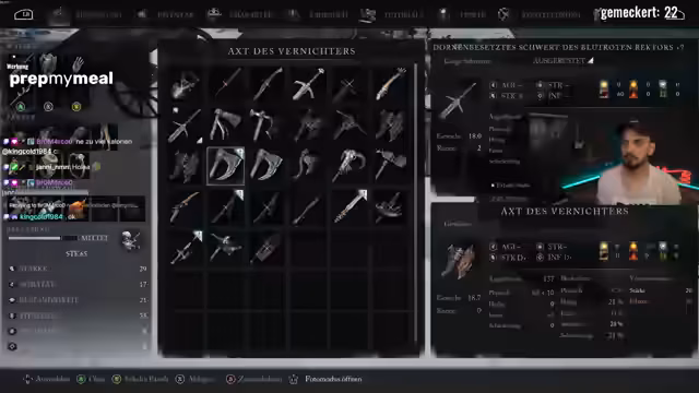 01:30:02Der Streamer reflektiert über seine bisherigen Spielerfahrungen in 'Lords of the Fallen' und vergleicht das Spiel mit anderen Titeln wie Elden Ring und Dark Souls. Er kritisiert certain design choices wie die Tastenbelegung für Springen und Angriffe als kontraproduktiv. Gleichzeitig lobt er die Waffe 'Big Bonk', die viel Spaß macht. Obwohl er im Solo-Modus kämpft, erwähnt er, dass viele die Koop-Erfahrung als deutlich unterhaltsamer und spaßiger beschreiben und empfiehlt dies für die Zukunft.