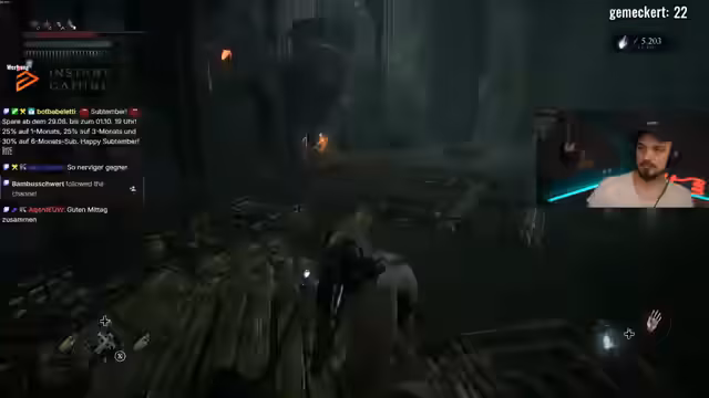 00:08:08Der Fokus liegt auf der Erkundung des Spiels 'Lords of the Fallen'. Der Streamer beschäftigt sich mit der Zerstörung bestimmter Objekte, da hinter ihnen wertvolle Gegenstände versteckt sein könnten. Er vernachlässigt die SGP-Quest, da sie zu lange dauert und entscheidet sich stattdessen, das Skill Level zu skalieren. Während des Gameplays wird die Frustration über die Umbralwelt deutlich, die absichtlich frustrierend sein soll, aber den Spieler auch in die Enge treibt. Probleme mit der Kamera und der Spielmechanik, wie zufällige Treffer und das Erkennen von Monstern, werden erwähnt.