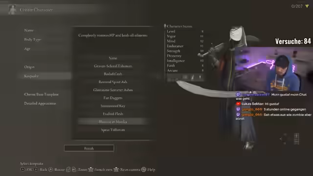 05:15:53Für einen 'All Boss No Death Run' werden Waffen empfohlen, mit denen man sich wohlfühlt, wie beispielsweise Katana, insbesondere die Nagakiba, die als bestes Katana gilt. Alternativ werden Great Omkiller, Cleaver und Great Stars genannt. Starfest wird als die beste Waffe im Spiel bezeichnet. Es wird die Godskin Stitcher als Wohlfühlwaffe genannt, obwohl sie nicht die stärkste ist. Die Godskin Pilar wird als bessere Waffe eingeschätzt. Der Fokus sollte auf Waffenlevel und Vitalität liegen, um mehr Schaden zu verursachen und länger zu überleben. Es wird davor gewarnt, am Anfang zu viel in Stärke zu investieren und stattdessen zuerst Waffen zu verbessern und dann Wit und Endoins zu leveln. Das Leveln von Waffen wird als wichtiger erachtet als das Erreichen eines hohen Levels wie 150, um effektiv Schaden zu machen. Ein Zuschauer berichtet von Problemen mit Frames, was das Spiel erschwert.