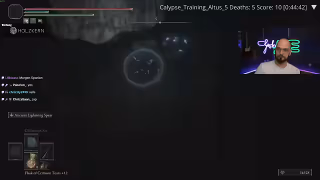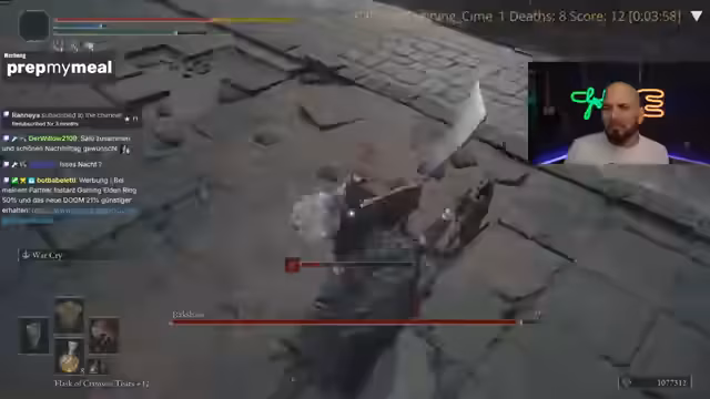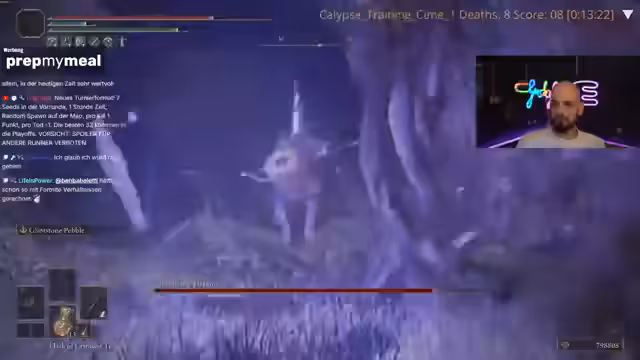 Ein Spieler absolviert ein intensives Training für das bevorstehende ELDEN RING-Turnier, dessen Sechzehntelfinale morgen um 16 Uhr beginnt. Die Vorbereitung umfasst die Entwicklung von Strategien für unerwartete Waffenfunde und die Analyse von Bosskämpfen. Parallel dazu wird die Handhabung von Werbepausen auf dem Kanal diskutiert, um Unterbrechungen des Gameplays zu minimieren und das Zuschauererlebnis zu verbessern.